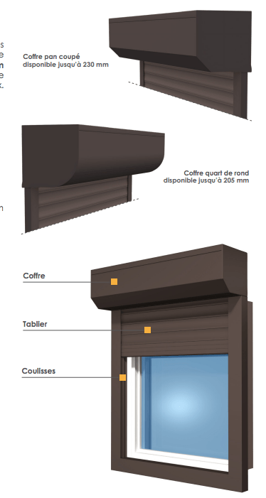 - Volet sur mesure Hauteur maxi 3000 mm / largeur maxi 4000 mm. Coffres : 137, 150, 165, 180, 205 et 230 mm